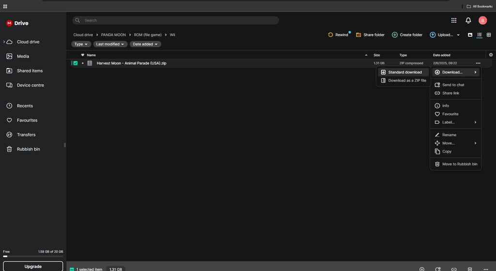 setelah mendownload emulator berikutnya kembali ke folder awal dan pilih folder ROM untuk mendownload file game, pilih folder Wii dan download file Harvest Moon Animal Parade.