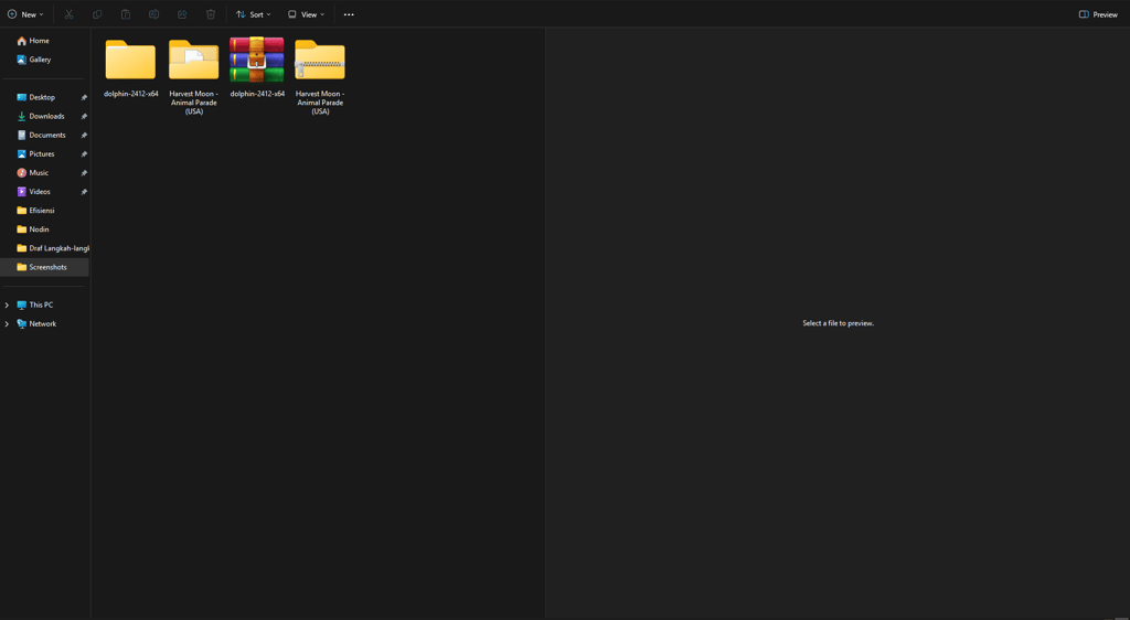 Setelah semua terdownload berikutnya ekstrak file dolphin dan harvest moon tadi.