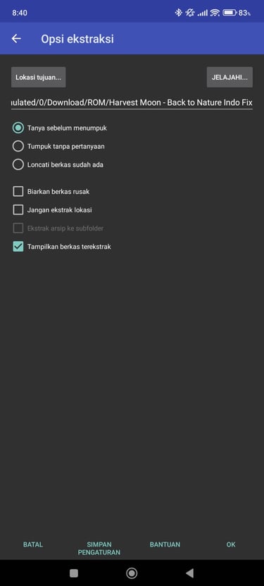 catatan: pastikan BIOS sudah di ekstrak, jika tidak kalian tidak bisa menyimpan gamenya.