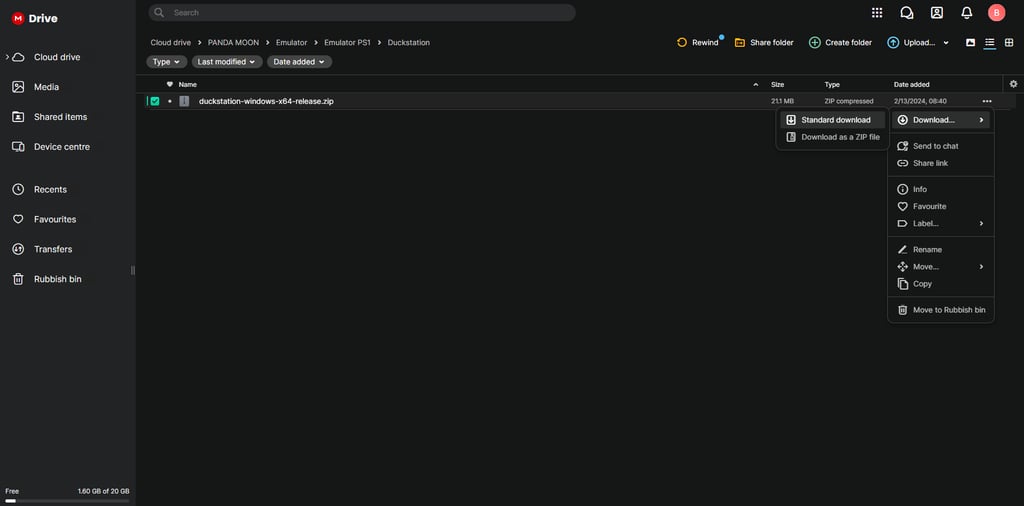 Setelah membuka link download tadi, pilih folder emulator kemudian pilih folder emulator PS 1 dan download DuckStation.