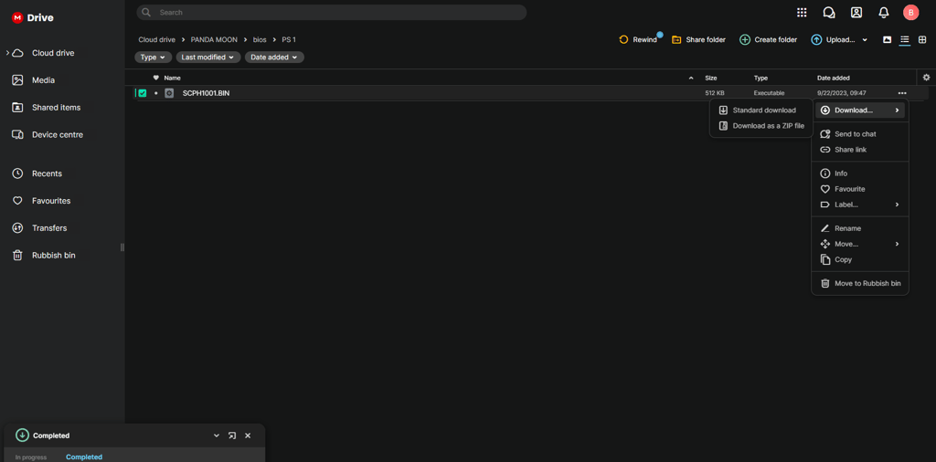 Kemudian Kembali ke folder awal, pilih folder BIOS pilih PS 1 dan download file BIOS PS 1 tersebut.