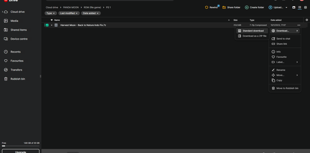 setelah mendownload emulator berikutnya kembali ke folder awal dan pilih folder ROM untuk mendownload file game, pilih folder PS 1 dan download file Harvest Moon Back to Nature Fix.