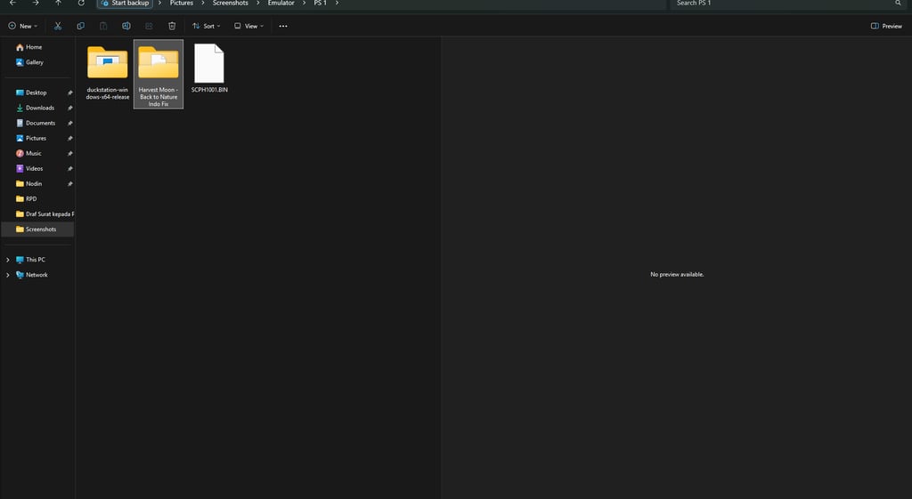 Setelah semua terdownload berikutnya ekstrak file DuckStation dan harvest moon tadi menggunakan WINRAR.