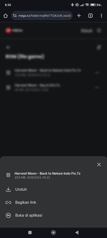 Setelah itu pilih titik tiga yang ada di file harvest moon kemudian pilih unduh dan tunggu sampai selesai, atau sampai file masuk ke dalam file manajer di hp kalian.
