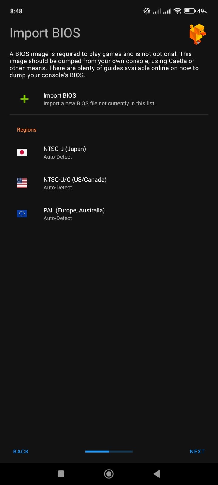 Setelah selesai mengekstrak, kembali ke aplikasi DuckStation, kemudian pilih next,